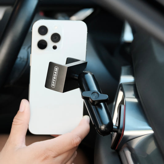 Offroam mounts are so sturdy, intuitive and beautiful that once you install them you will feel they were there from the start. That's because unlike flimsy, one-size-fits-all plastic mounts that wobble, the Offroam mounts are custom-shaped to hug the dash of your vehicle, engineered for an easy non-drill installation, and made from aluminium with sturdiness of a permanent mount.