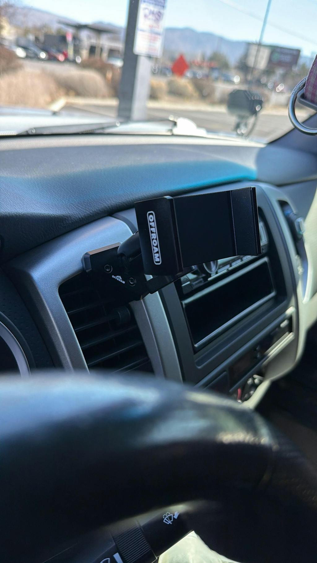Keeps the view clear. Offroam gives you an easy way to position your phone so you can see it without blocking the windshield or controls.